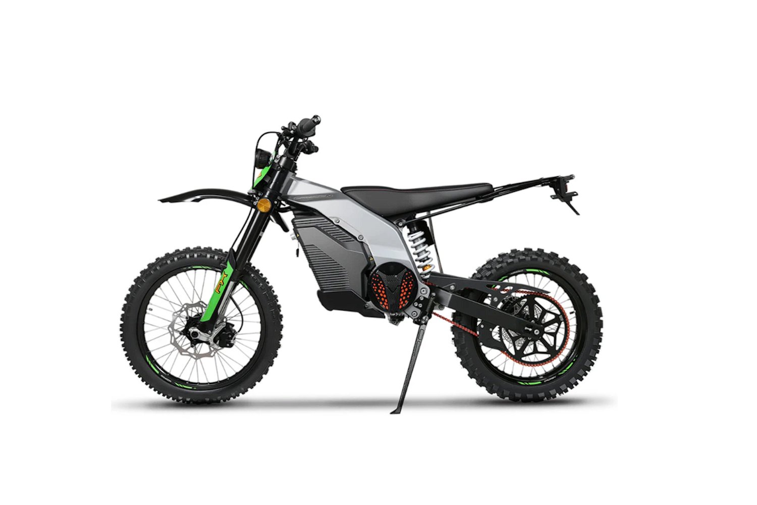 Discover the FX's Aluminum Unibody Frame, a high-strength chassis with 30% increased strength thanks to its zero-welding construction, providing exceptional off-road capabilities. With a lightweight design that boosts overall performance and ensures agility, paired with balanced weight distribution for stability on diverse terrains, this unibody frame elevates your riding experience.